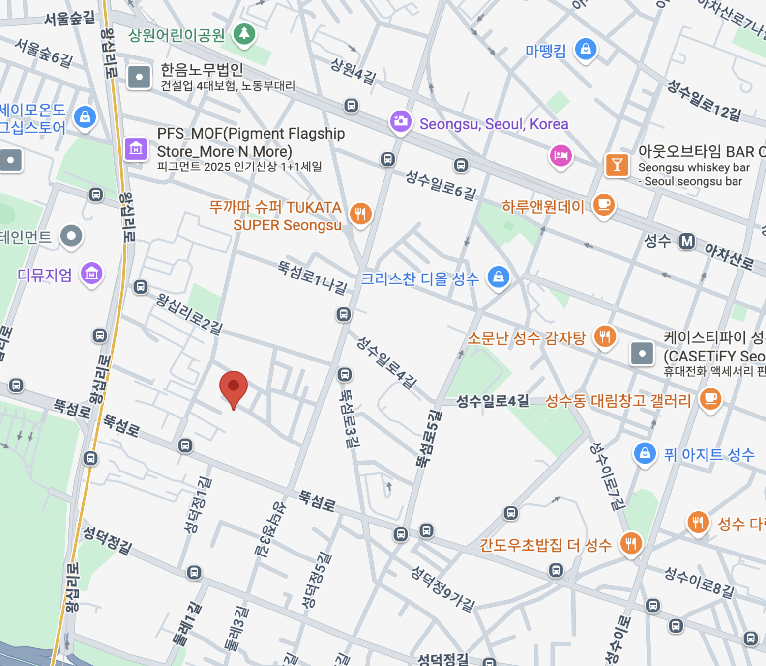 📌 地址:韓國 首爾市 城東區 聖水1路1街13號 鄭宇大樓4樓(4F, Jungwoo Building, 13 Seongsuil-ro 1-gil, Seongdong-gu, Seoul, Republic of Korea)
